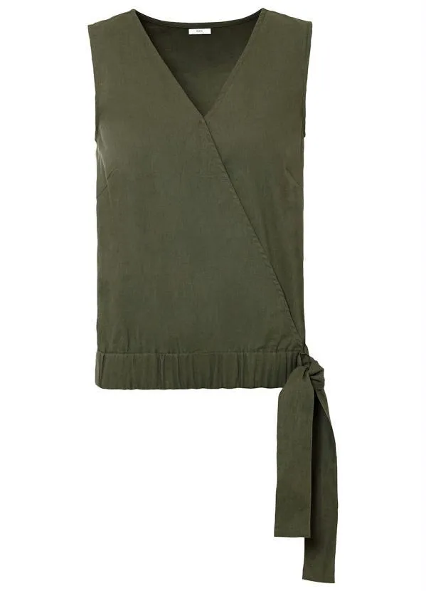 Queima Estoque - Blusa com Amarração na Barra Verde Oliva