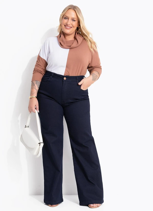 Blusa soltinha em malha canelada macia, com gola alta e recorte frontal contrastante em off-white. Confortável e moderna, é perfeita para compor looks casuais com estilo. Fabricada em malha canelada, oferece excelente caimento e toque suave, ideal para o dia a dia e diversas ocasiões, do trabalho ao lazer.
