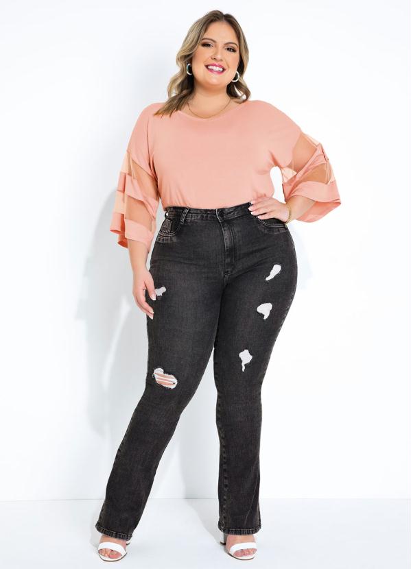 Sawary Jeans - Calça Cinza Boot Cut Super Lipo Sawary Plus Size