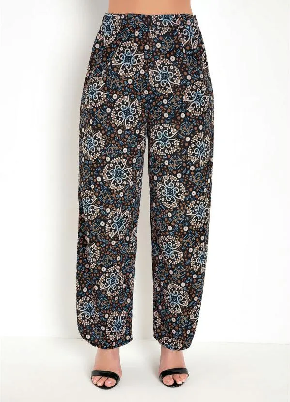 Moda Pop - Calça Pantalona Arabescos Preta com Fenda