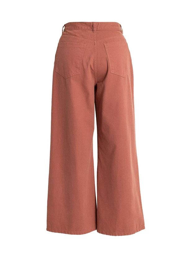Calça em sarja cor terracota, com modelagem reta e toque macio. Possui cós com passantes e bolsos funcionais, unindo conforto e estilo em uma peça versátil para composições modernas.