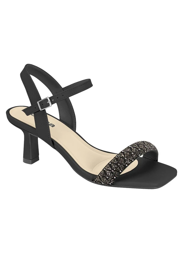 Sandália feita pra brilhar com você! Produzida em material sintético, ela tem detalhe em strass que adiciona um toque especial de elegância. O fechamento em fivela oferece ajuste perfeito e praticidade. Com palmilha Confort e salto de 6 cm, é a escolha ideal pra unir estilo e conforto em qualquer ocasião!