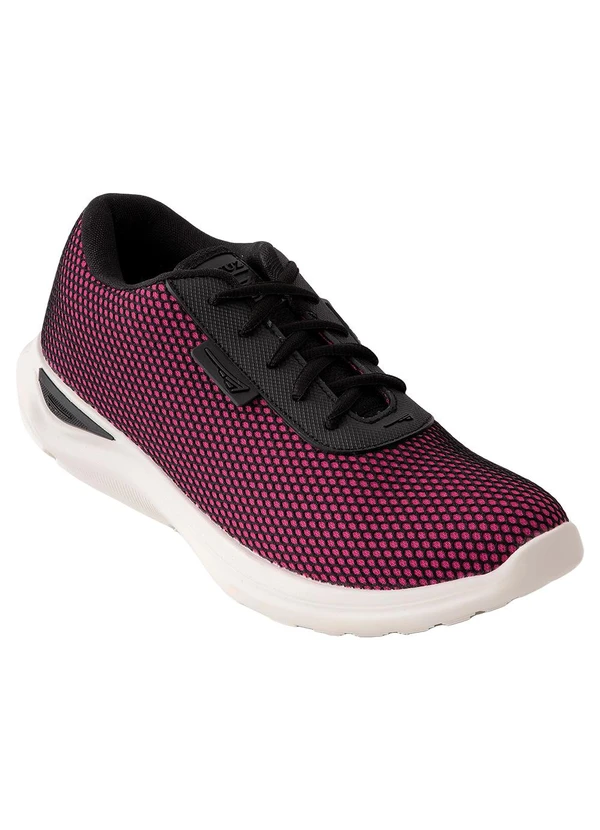 Tênis feminino esportivo desenvolvido em tecido com detalhe em sintético. Fechamento em cadarço. Solado em PVC microexpandido.