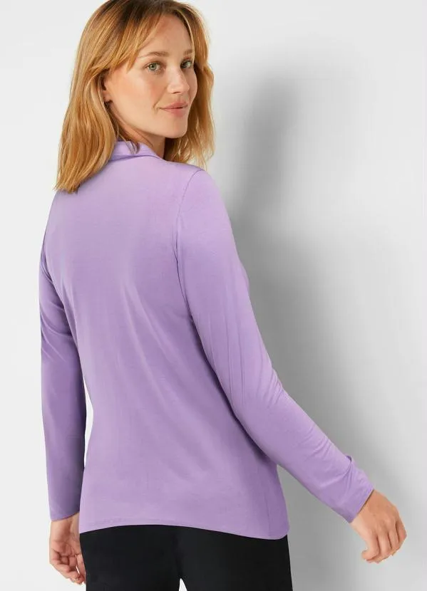 Camisa, em viscose com elastano. Possui decote com gola, mangas longas e vista frente com fechamento em botões.