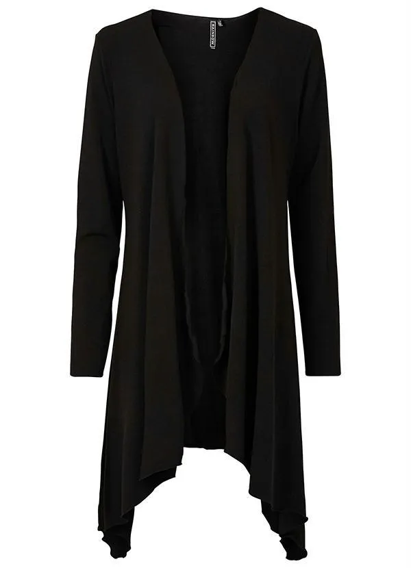 Cardigã transpassado em malha de viscose com elastano. Barra frente larga. Modelagem soltinha.