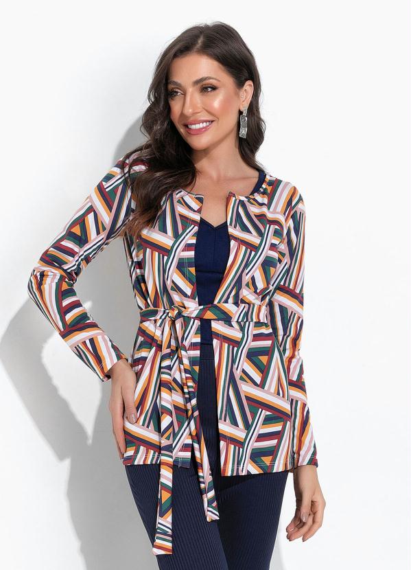 Moda Pop - Casaco Listras Mostarda com Faixa para Amarrar