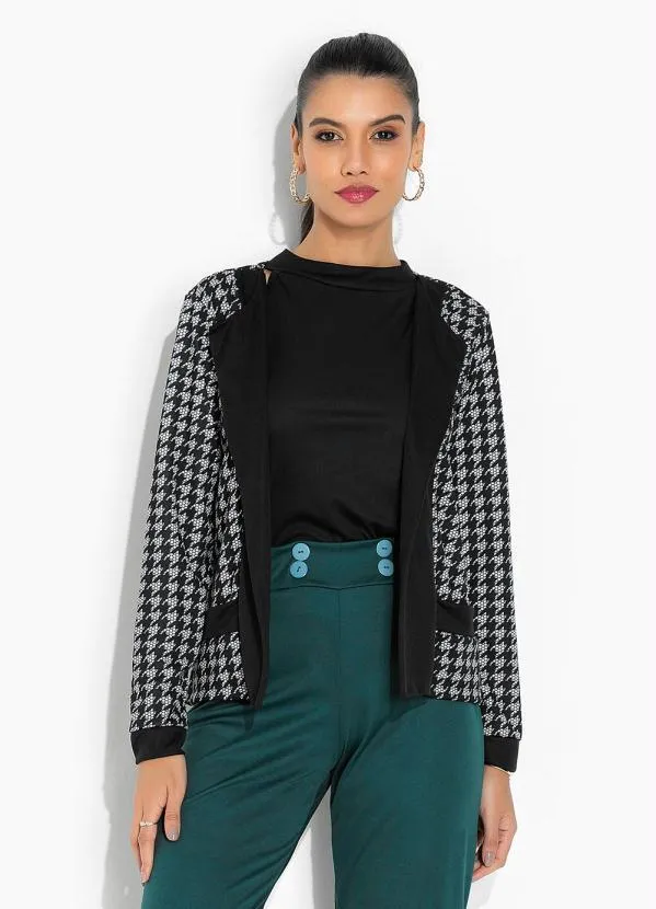 Moda Pop - Casaco Pied de Poule Mangas Longas e Gola