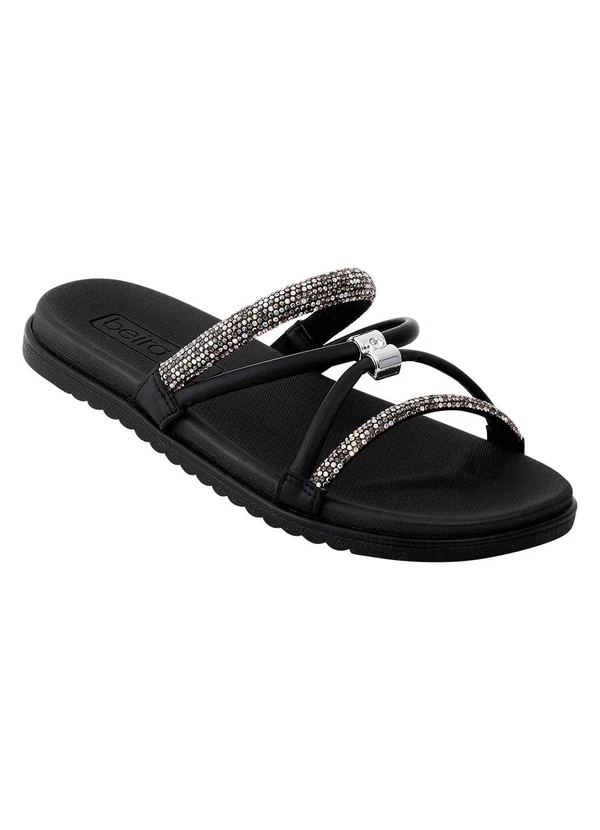 Chinelo Beira Rio, desenvolvida em material sintético com aplicação de strass. Palmilha Confort. Solado 3 cm.