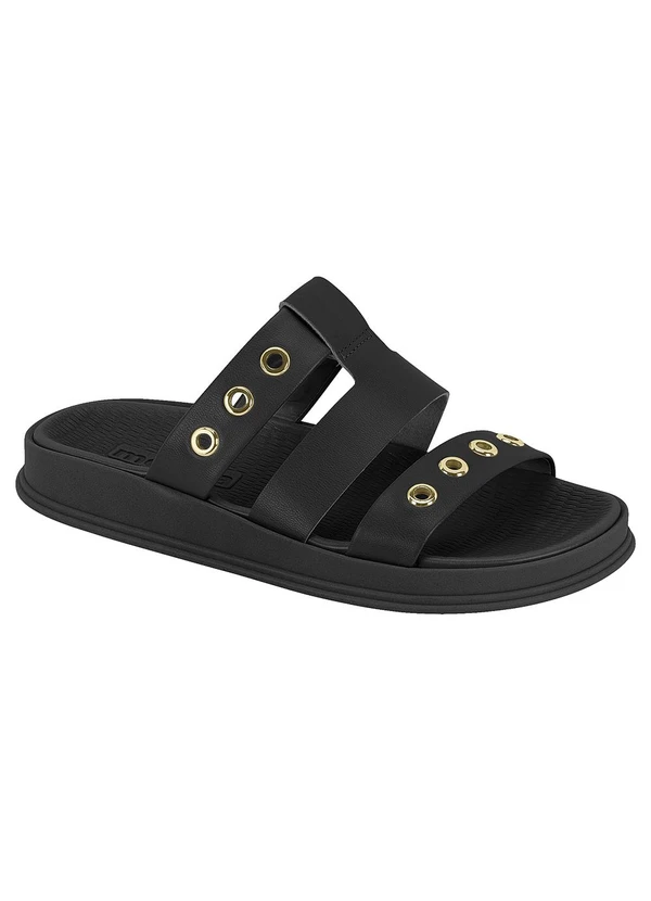 Confeccionado em material sintético, este chinelo se destaca pelo detalhe dourado no cabedal, que adiciona um toque sofisticado ao visual. A palmilha Confort garante maciez e bem-estar, enquanto o solado em PVC oferece leveza e segurança. Com salto de 3 cm, é perfeito para quem busca praticidade sem abrir mão do estilo.
