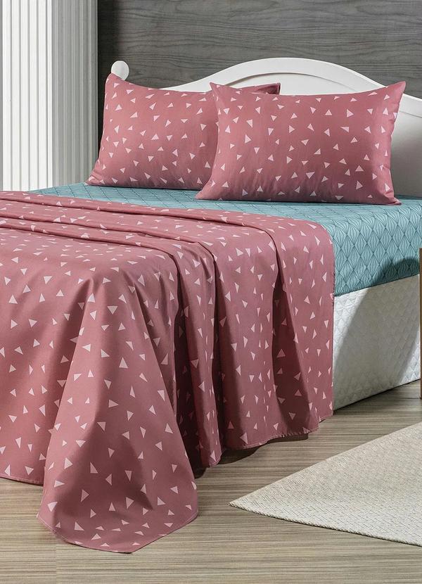 Mundo Lar - Jogo de Cama 150 Fios Rosa Casal 4 Peças