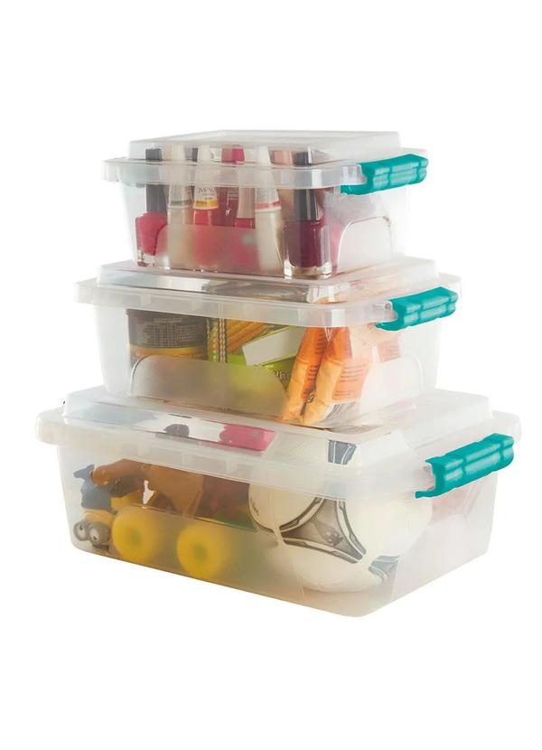 Podem ser usadas no freezer e micro-ondas. Caixas organizadoras, para guardar tanto utensílios quanto alimentos.
