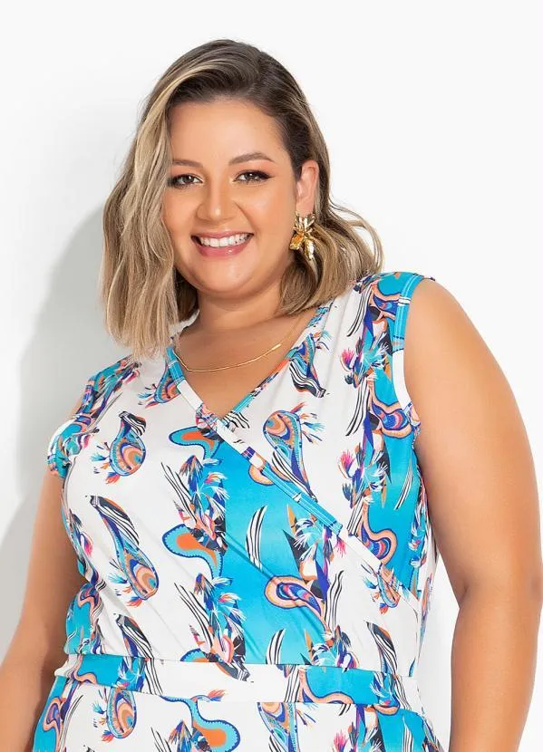Marguerite - Macacão Paisley Azul com Transpassado Plus Size