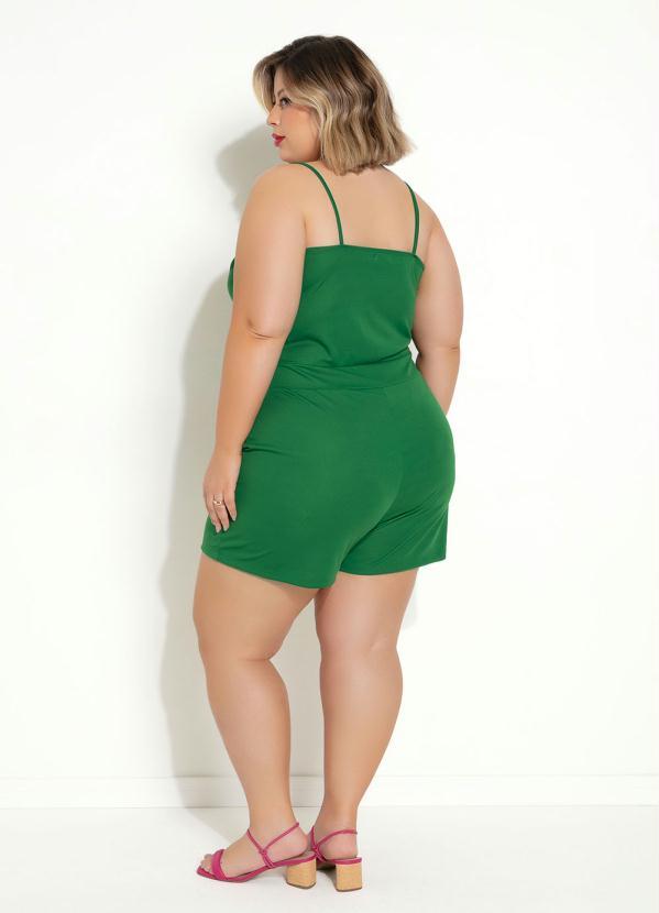 Marguerite - Macaquinho Verde Bandeira com Bolsos Plus Size