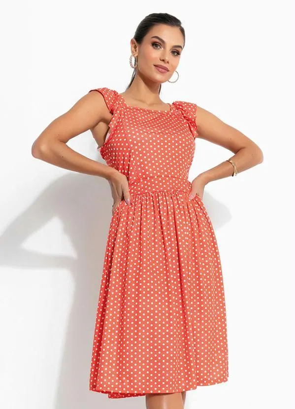 Queima Estoque - Vestido Poá Laranja com Alça Moda Evangélica