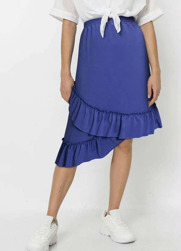 Queima Estoque - Saia com Babados Assimétrica Azul
