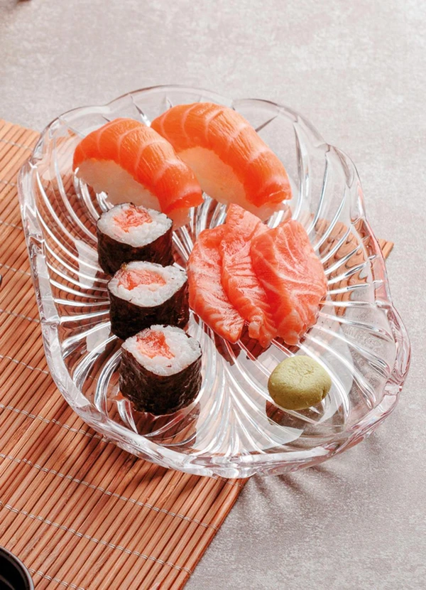 1 Bandeja em cristal com design clássico e lapidação delicada.