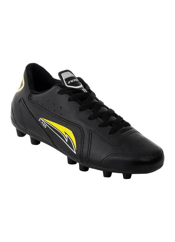 Chuteira Campo desenvolvida em couro com detalhes em sintético. Fechamento em cadarço. Solado em PVC.