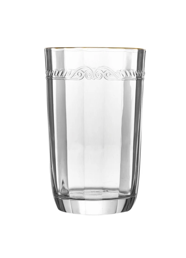 Composto por: 1 Copo alto com fio de ouro. Capacidade: 370 ml. Composição: Vidro. Imagens meramente ilustrativas.