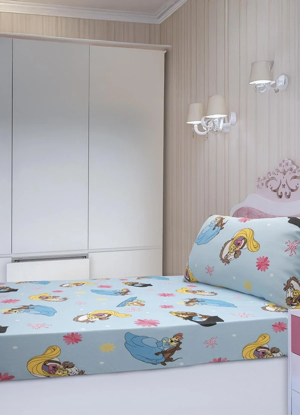 Portallar - Jogo de Cama Solteiro Estampado/Princesas 2peças