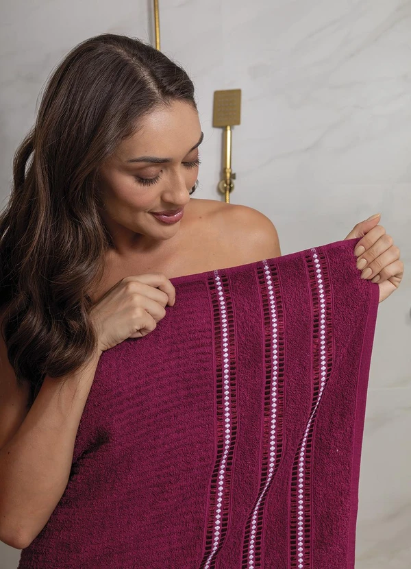 Composto por: 1 Toalha de banho confeccionada em 100% algodão, garantindo maciez, conforto e alta absorção. Com gramatura de 325 g/m², possui toque suave e agradável, ideal para o uso diário. No tamanho 1,70 x 0,76 cm, proporciona excelente cobertura e praticidade. Disponível na cor marsala, que adiciona charme e estilo ao seu enxoval. Imagens meramente ilustrativas.