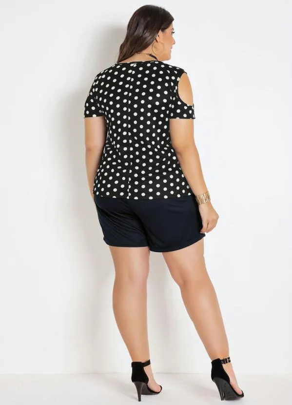 Marguerite - Blusa com Ombros Vazados Poá Plus Size - variação: Preta