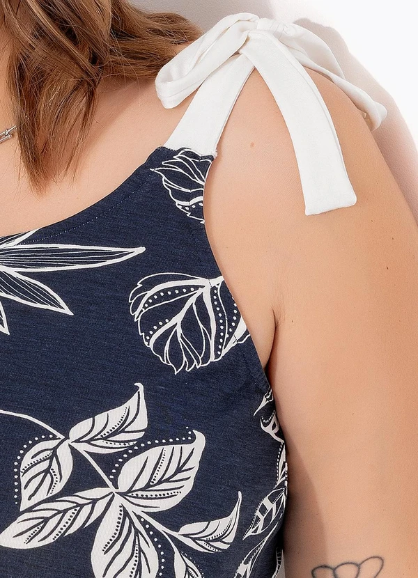 Marguerite - Blusa Folhagem Azul em Malha de Viscose