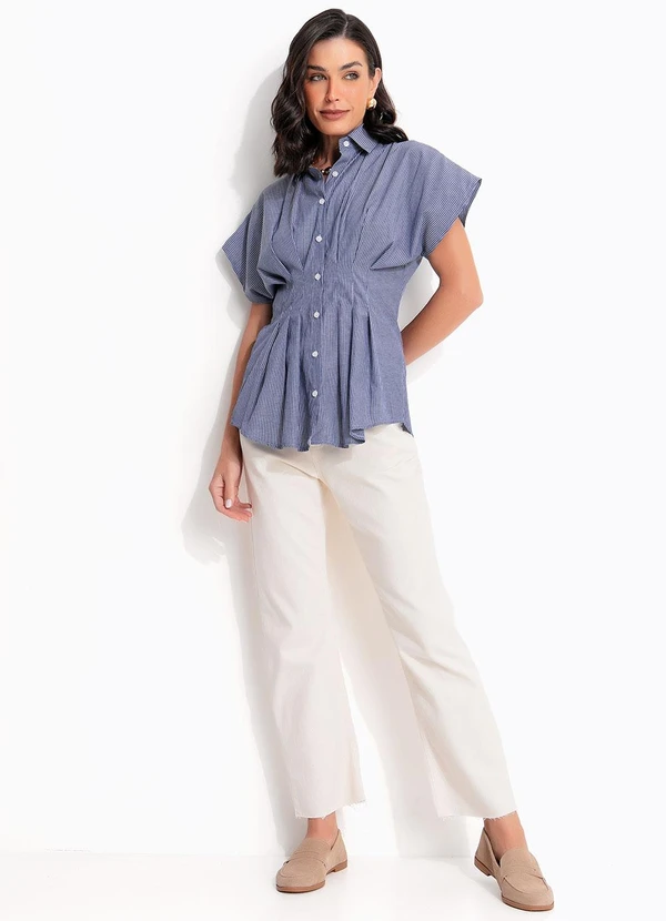 Quintess - Blusa Listrada Azul em Tecido Plano