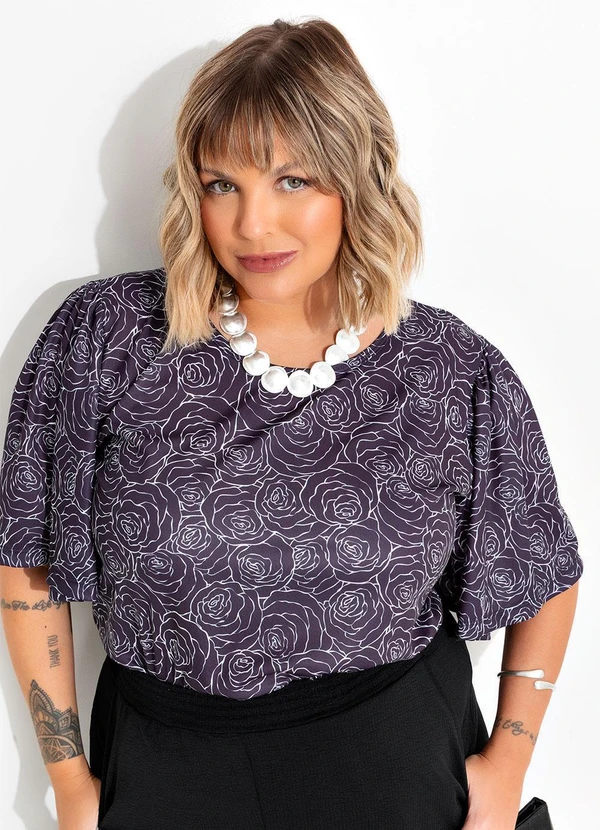 Marguerite - Blusa Rosas em Jersey Acetinado