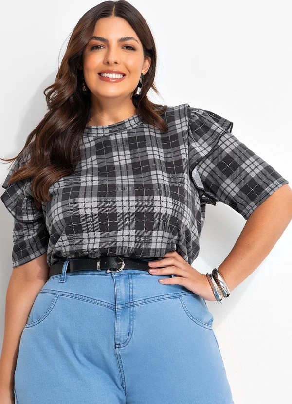 Marguerite - Blusa Xadrez Cinza em Malha