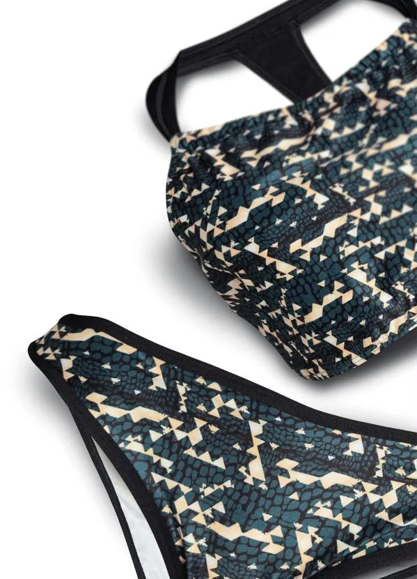 Calcinha biquíni em poliéster elastano. Forro em poliamida. Modelo cintura média, com frisos contrastantes, elástico na cintura e abertura pernas. Não acompanha busto biquíni.