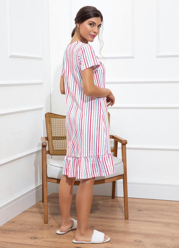 Camisola, em malha de algodão. Modelagem soltinha, com manga curta e estampa frontal. Comprimento curto.