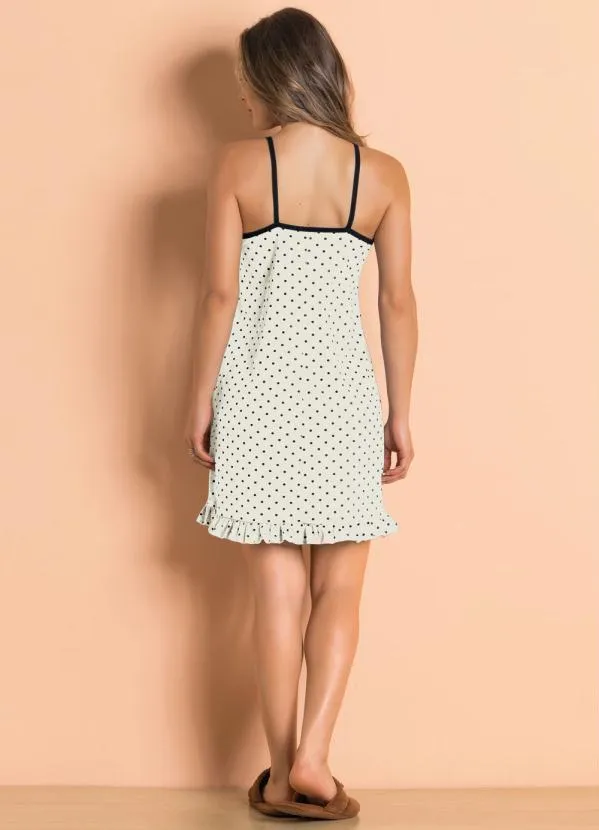 Alma Dolce - Camisola com Babado na Barra Bege com Poá