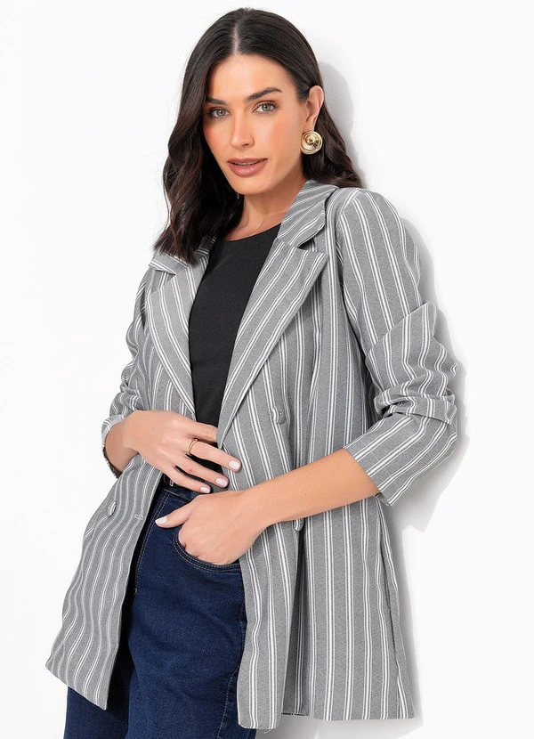 Quintess - Casaco Listrado Cinza em Tecido Acetinado