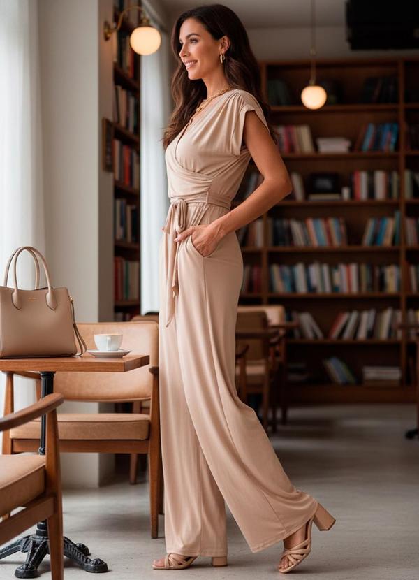 Quintess - Macacão Areia em Malha de Viscose