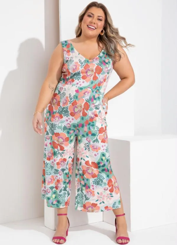 Queima Estoque - Macacão Floral Borrado com Ilhós nas Costas