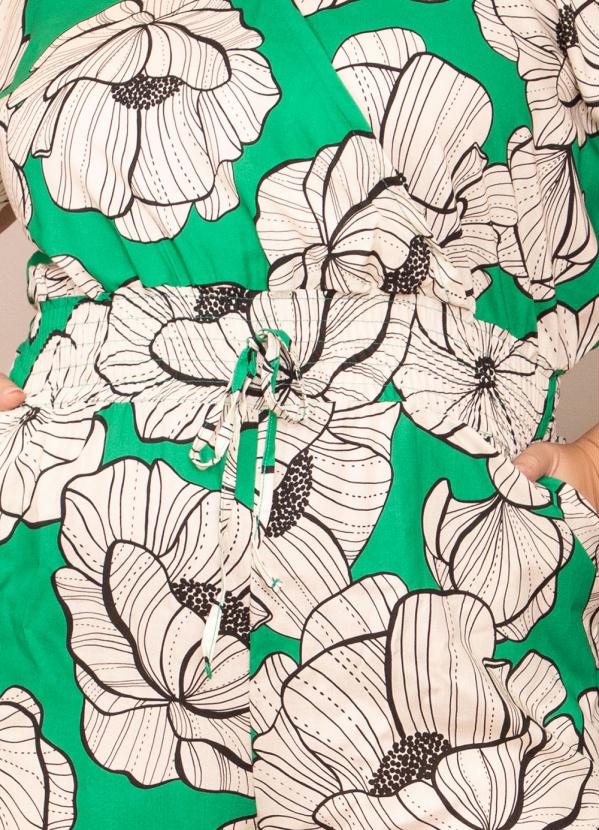 Quintess - Macacão Floral Fundo Verde em Viscose Plana