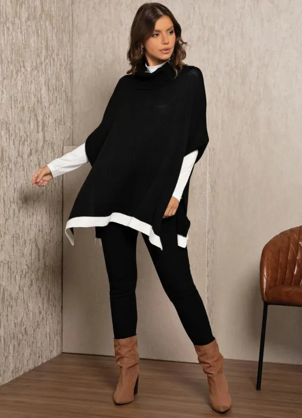 Quintess - Poncho Preto/Branco com Gola Alta