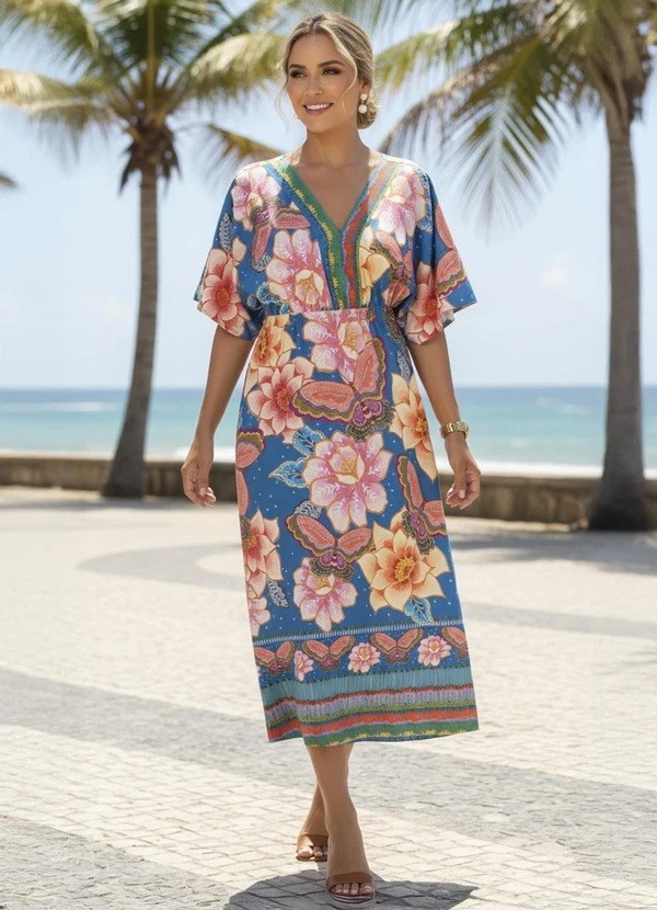 Quintess - Vestido Floral Natureza em Malha Fria