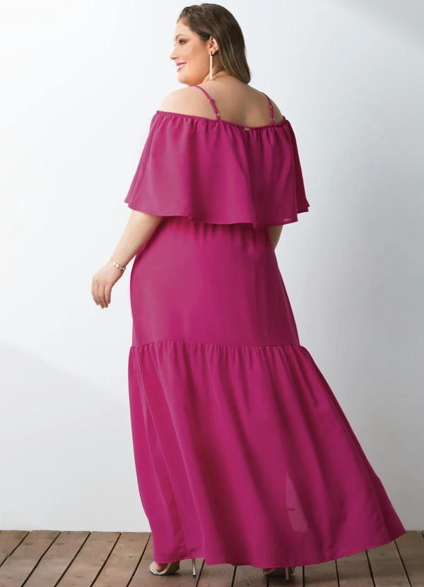 Complemento: Alças com regulagem; babado; elástico na cintura; fenda(s)