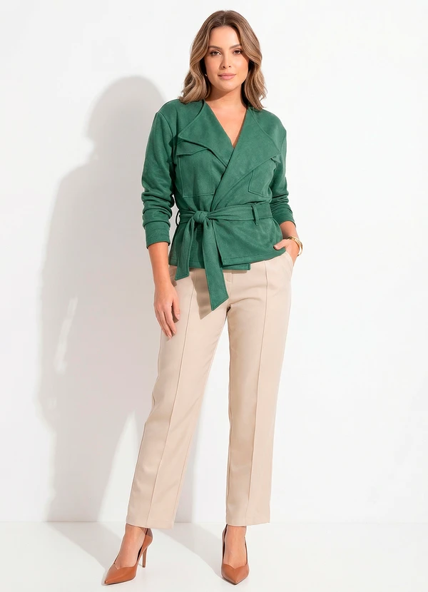 5. Quintess - Calça Bege em Tecido Alfaiataria
