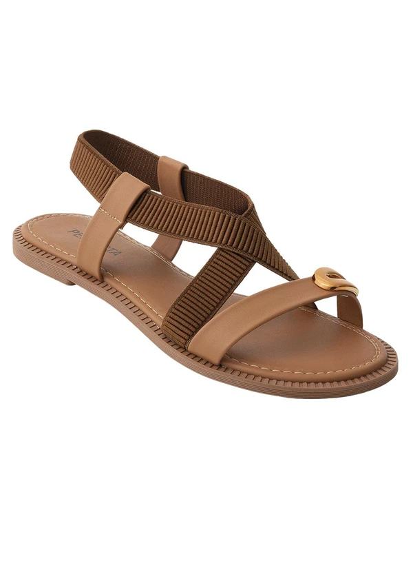 A rasteirinha é produzida em material sintético, com adereço dourado no cabedal que destaca o design. Possui elástico para fácil calce e ajuste confortável. O solado em PVC oferece resistência e flexibilidade, garantindo conforto para o uso diário. Ideal para quem busca um calçado prático, elegante e versátil, perfeito para ocasiões casuais e momentos de lazer, unindo estilo e funcionalidade em um só produto.