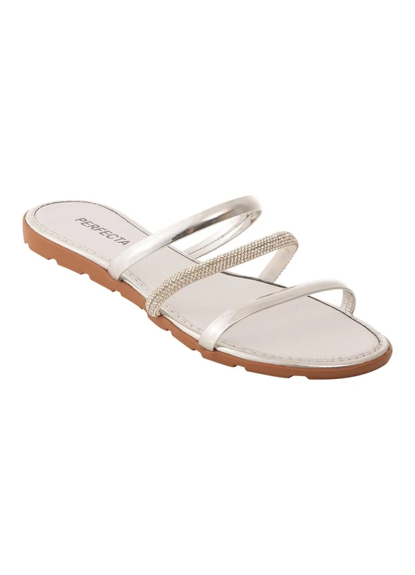 Perfecta - Rasteirinha Prata em Verzir Metalizado e Strass