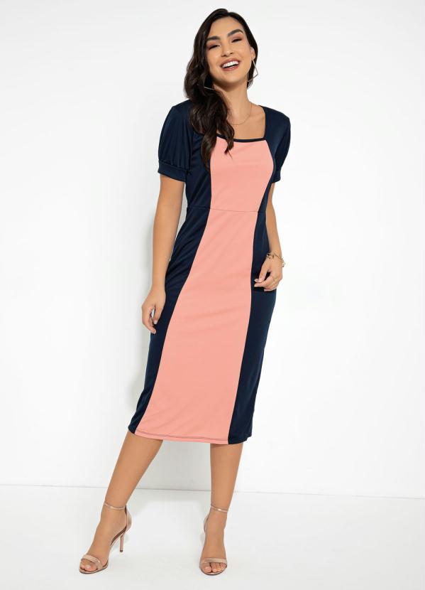 Rosalie - Vestido Tubinho Marinho e Rosa Moda Evangélica