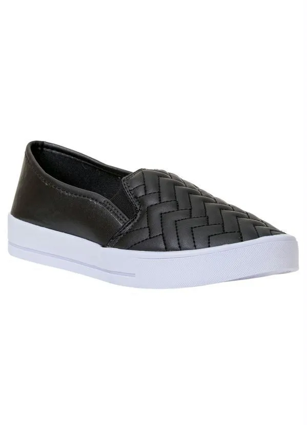 Tênis feminino desenvolvido em sintético com detalhe de costuras no cabedal. Modelo calce fácil com elástico nas laterais. Solado em PVC.