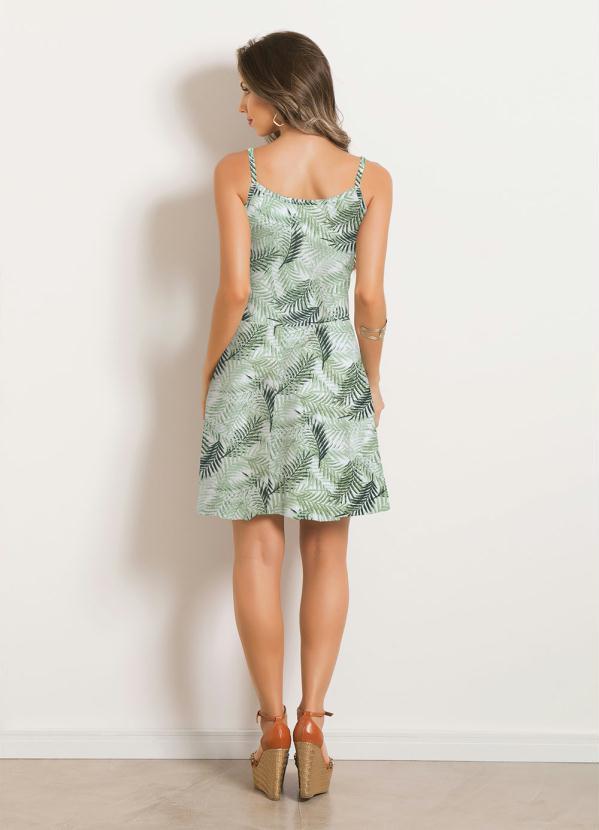 Moda Pop - Vestido Evasê de Alças Folhagem Verde