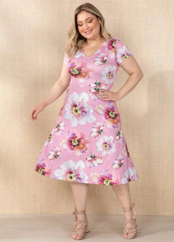 Queima Estoque - Vestido Floral Rosa com Detalhe nas Costas