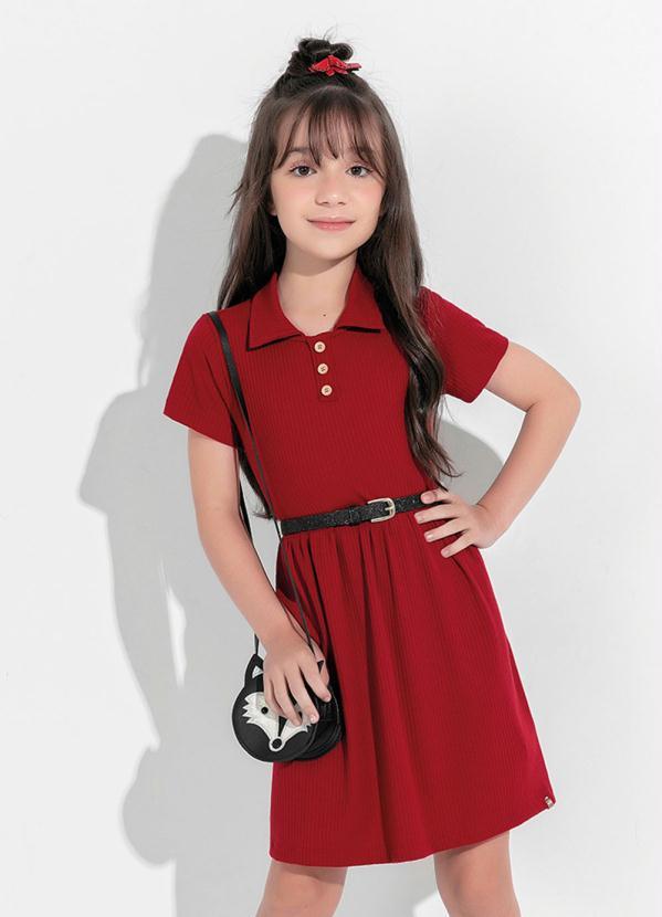 Moda Pop - Vestido Infantil Bordô Gola Pólo
