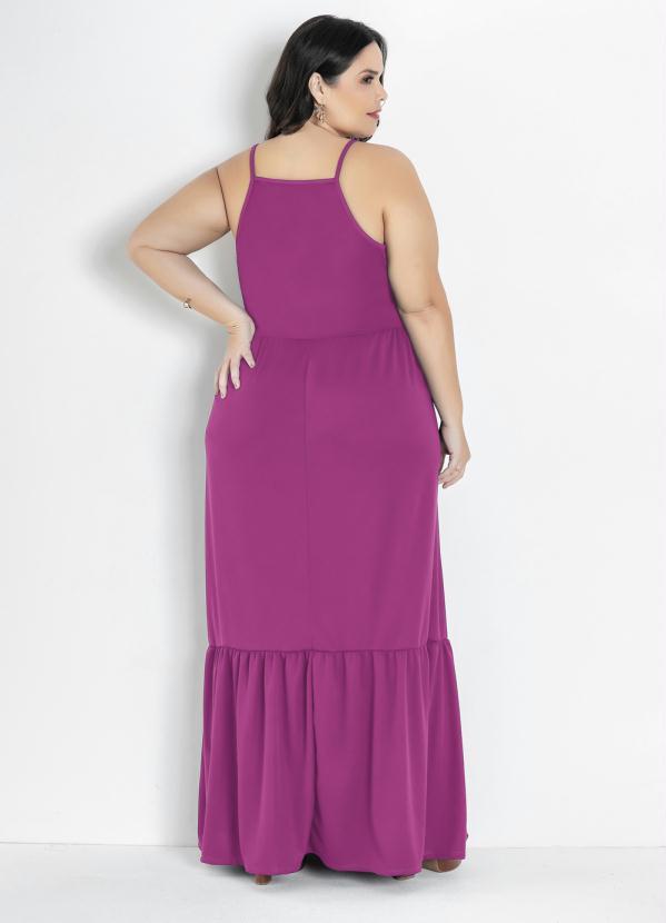 Marguerite - Vestido Longo Pink com Babado Plus Size