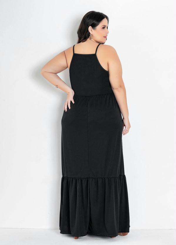 Marguerite - Vestido Longo Preto com Babado Plus Size