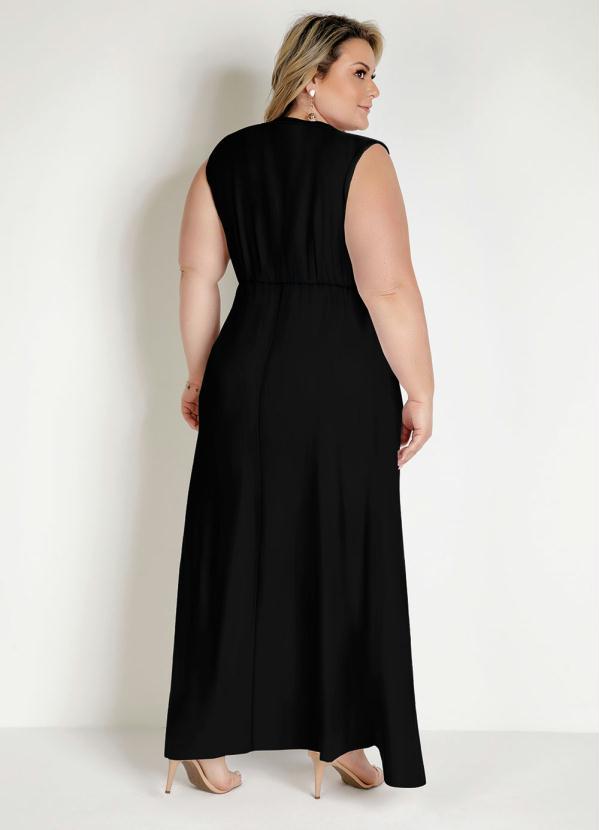 Marguerite - Vestido Longo Preto Plus Size com Transpasse